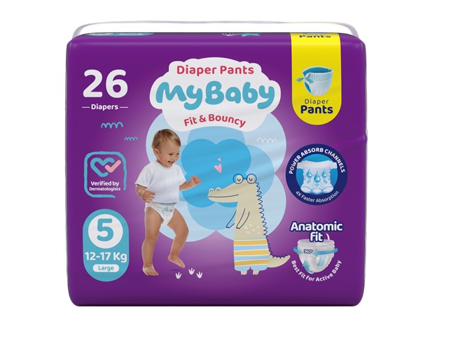 پوشک شورتی مای بیبی سایز 5 یکی از محبوب ترین پوشک های شرکت مای بیبی می باشد. سایز این پوشک 5 می باشد و برای کودکان با وزن 13 تا 20 کیلوگرم مناسب می باشد و همچنین در آن از الیافی استفاده شده است که با پوست کودک شما سازگار باشد. تعداد پوشک های موجود در این بسته 26 عدد می باشد. پوشک mybaby جزء برندهای محبوب نزد کارشناسان و همچنین بسیاری از مادران و پدران می باشد. این نمونه از پوشک ها در آزمایشگاه هایی تخصصی و با پودرهای جاذب تولید می شود.