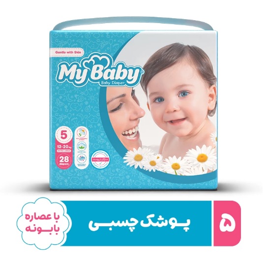 پوشک مای بیبی مدل chamomile سایز 5 یکی از محبوب ترین پوشک های شرکت مای بیبی می باشد. سایز این پوشک 5 می باشد و برای کودکان با وزن 12 تا 20 کیلوگرم مناسب می باشد و همچنین در آن از الیافی استفاده شده است که با پوست کودک شما سازگار باشد. تعداد پوشک های موجود در این بسته 28 عدد می باشد. پوشک mybaby جزء برندهای محبوب نزد کارشناسان و همچنین بسیاری از مادران و پدران می باشد. این نمونه از پوشک ها در آزمایشگاه هایی تخصصی و با پودرهای جاذب تولید می شود.